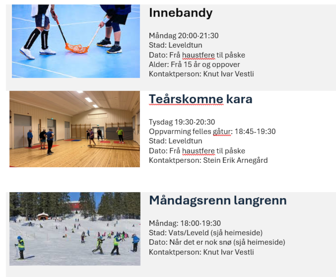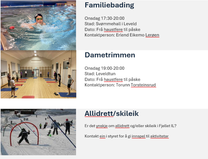Fjellet IL er i gang med aktivitetar, og følg oss på Facebook for fleire detaljar. Her er ein oversikt over aktivitetane: